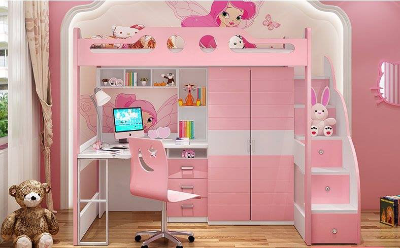 Việc thiết kế giường tầng có các hình trang trí ngộ nghĩnh. Như như mèo Hello Kitty, Doremon, ô tô, ngôi nhà… thường được nhiều người yêu thích. Với những cô nàng bánh bèo, yêu thích màu hường thì có thể chọn cho mình mẫu giường tầng Hello Kitty, công chúa Elsa…