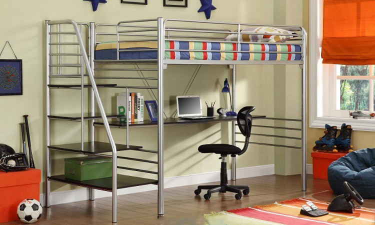 Thêm một mẫu giường cũng chiếm được trái tim người sử dụng. Đó chính là giường tầng hiện đại có hộc tủ, ngăn kéo và kệ trang trí. Mẫu giường này phù hợp với những không gian có diện tích nhỏ, hẹp. Việc trang bị những hộc tủ, ngăn kéo kết hợp với bàn làm việc nhằm giúp người dùng bảo quản các đồ vật gọn gàng, ngăn nắp. Đặc biệt là có thể trang trí những đồ vật trên bàn học hợp lý, gọn gàng.
