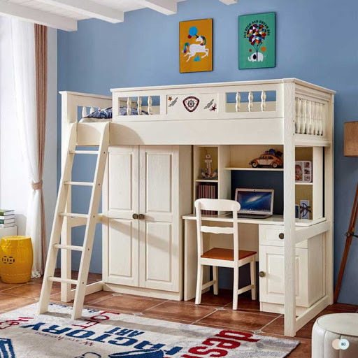 Giường tầng kết hợp với bàn làm việc phù hợp với những gia đình có không gian nhỏ, hẹp. Hay người muốn có không gian yên tĩnh làm việc, đọc sách. Thay vì phải dành hai chỗ để đặt giường và bàn thì giờ đây không gian nhà chỉ tốn một phân nửa diện tích. Ngoài ra, mẫu giường tầng thông minh này không chỉ tiết kiệm diện tích mà nó còn tiện ích với người dùng mỗi khi sử dụng. Bạn sẽ không cần phải di chuyển qua lại nhiều lần giữa bàn làm việc với giường ngủ. Và không gây tiếng ồn lớn, làm ảnh hưởng đến mọi người xung quanh.