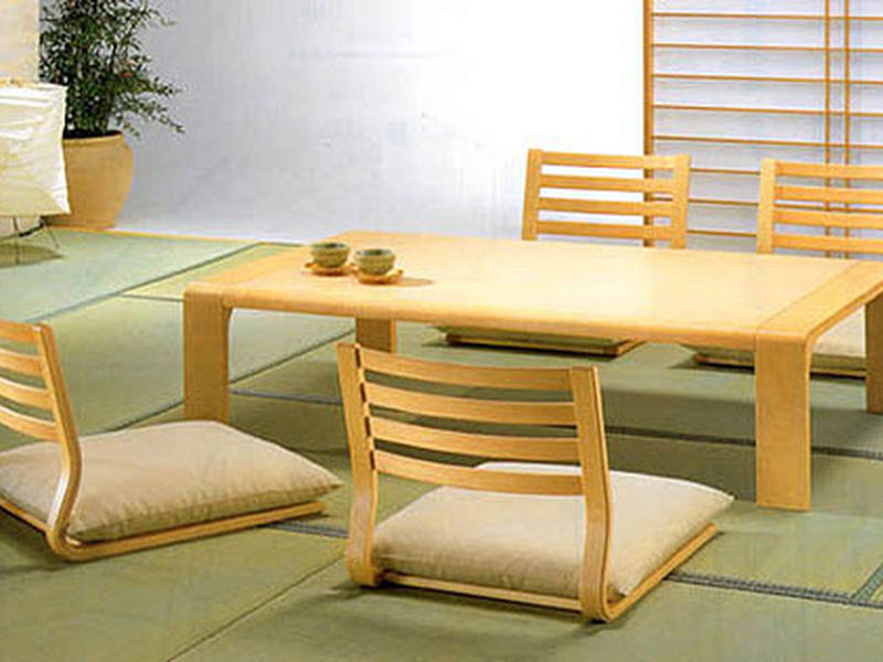 Nếu sống trong cách không gian nhà ở hay chung cư nhỏ hẹp, không tiện ngồi bệt thì mẫu bàn ăn kiểu Nhật với ghế dễ cất gọn này có thể là lựa chọn phù hợp với gia đình bạn.