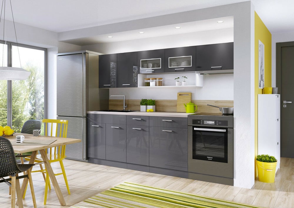 Nhằm tiết kiệm và tận dụng tối đa diện tích ngôi nhà, tủ bếp chữ I là sự lựa chọn hoàn hảo cho những nhà nhỏ hạn hẹp về không gian. Hoặc những ngôi nhà ống có bếp và phòng khách cùng một mặt bằng.