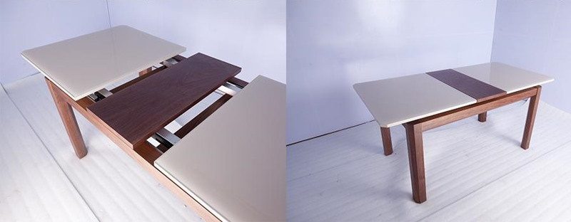 Được ghép từ những thanh gỗ nhỏ, tạo thành 1 lớp mặt bàn dày. Chiếc bàn tưởng chừng như đơn giản và bình thường này lại có thể trờ nên rộng hơn, dài hơn nhờ thiết kế thông minh. Chỉ cần kéo một bên bàn ra sẽ trở thành một chiếc bàn ăn cho 6 người.