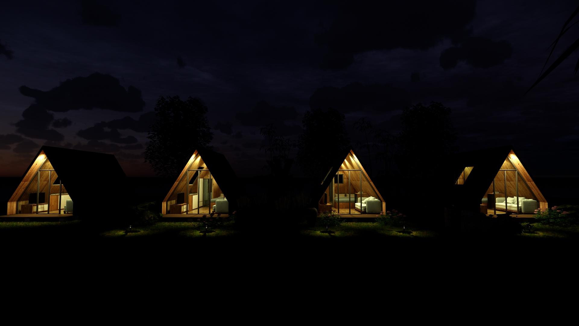 Ở bên trong, các cửa sổ được thiết kế và sử dụng vật liệu gỗ, có thể mở hoặc đóng cửa mang ánh sáng tự nhiên vào cho căn nhà, bạn có thể ngắm khung cảnh của khu du lịch qua những ô cửa kính. Việc này đảm bảo sự riêng tư và an toàn cần thiết nếu sử dụng để ở lâu dài.