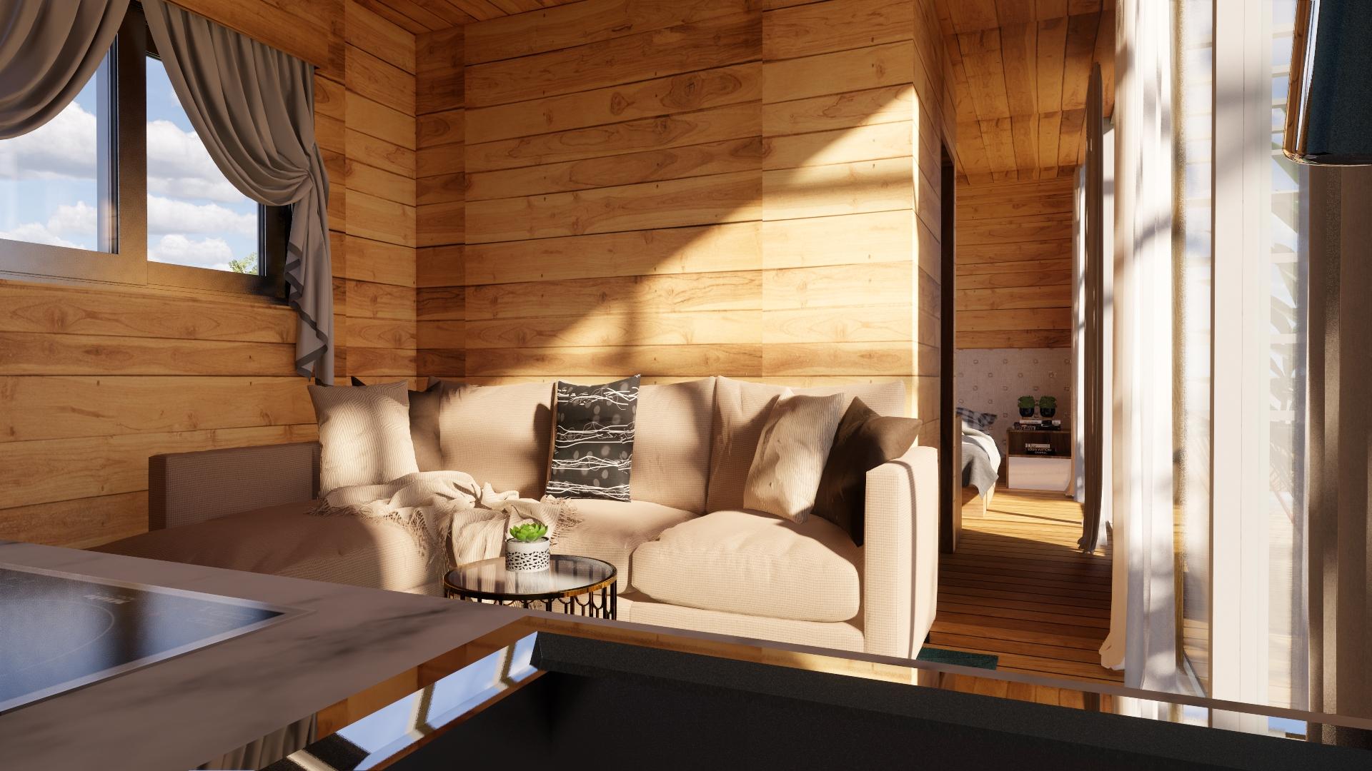 Nhiều gia đình cũng lo lắng việc bài trí nội thất sau khi mua nhà, đặc biệt những vợ chồng mới cưới thường có nhiều điều kiện để trang bị cho mình một không gian thoải mái nhất vì thế các bạn nên tham khảo ngôi nhà gỗ thông minh có diện tích vừa đủ với một gia đình trẻ bao gồm phòng khách, phòng ngủ, phòng bếp, phòng tắm,… đã được thiết kế nội thất đầy đủ. Việc của bạn sau khi chuyển vô là sắm thêm các thiết bị để phục vụ cuộc sống sinh hoạt.