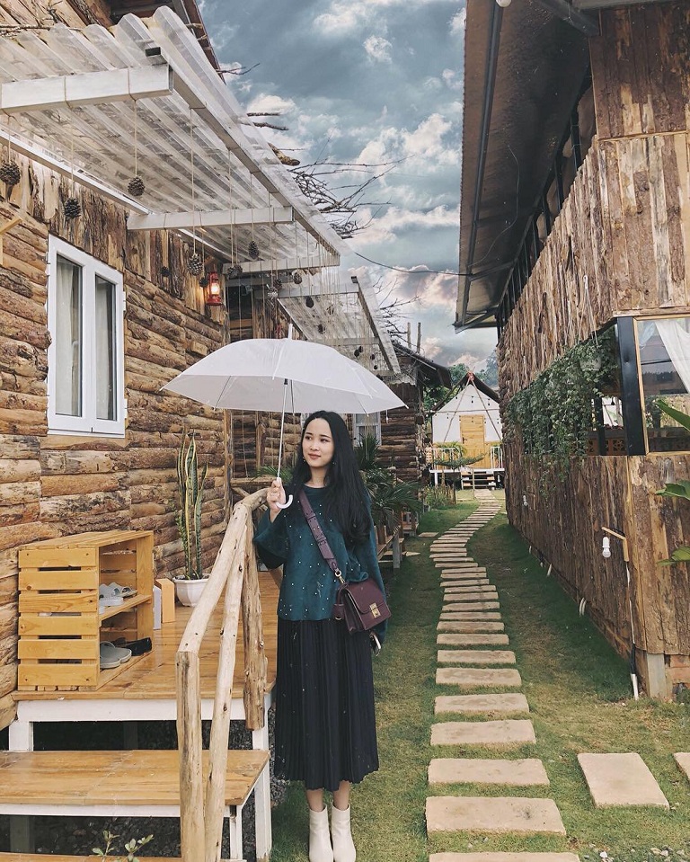 Hometay này gồm 11 căn nhà, được làm hoàn toàn từ gỗ, bên ngoài bạn sẽ thấy có vẻ như căn nhà thật cũ kỹ, tuy nhiên khi vào bên trong nội thất được trang hoàng giúp bạn có thể nghỉ ngơi thoải mái nhất. Căn nhà nổi bật với phong cách đậm Châu Âu với bức tường, từng ô cửa bằng gỗ mộc mạc, bên trong có décor trang trí đơn giản nhưng tinh tế, hài hòa giữa chất liệu gỗ và vải thổ cẩm.