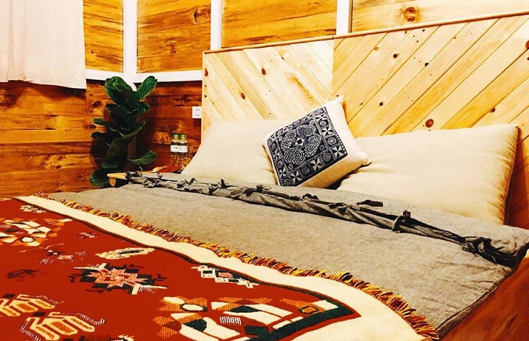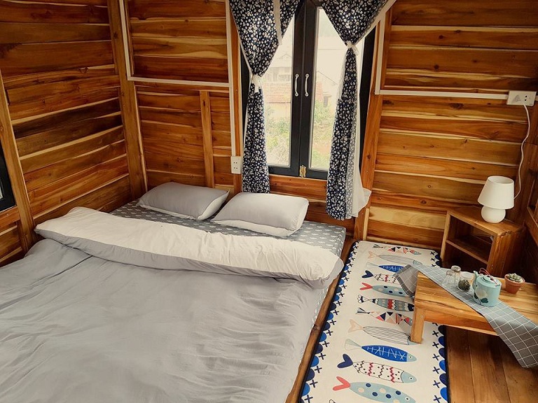 Ngôi nhà được trang bị đầy đủ chăn đệm, trong phòng sạch sẽ, thơm mát được phối những màu sắc có tông trẻ trung, hiện đại mang lại cảm giác ấm cúng. Nội thất màu gỗ cũng khiến mọi người cảm thấy hòa hợp với thiên nhiên hơn.
