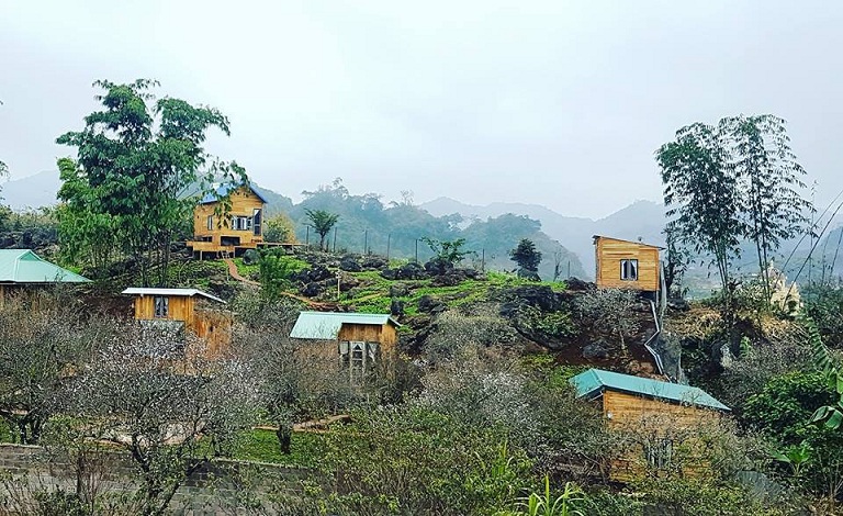 Những ngôi nhà tại đây có Backrouund chụp hình rất đẹp, với nắng và hoa mơ. Những ngôi nhà ấm cúng, sáng sớm mở mắt bạn sẽ thấy những vườn mơ nở trắng lưng đồi. Buổi tối bắc ghế ra sân ngồi ngắm sao trời, đầy lãng mạn và ấm cúng.