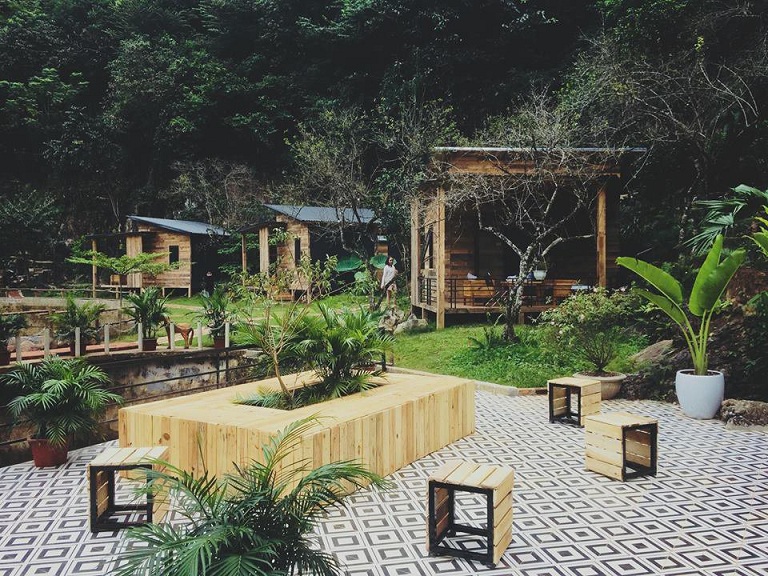 Các căn Bungalow ở đây được làm từ chất liệu gỗ, hoàn hảo tới từng góc cạnh, không quá cầu kỳ và trang trí được tối giản hóa với sàn gỗ, tường nhà cũng bằng gỗ với gam màu trầm ấm, nhẹ nhàng làm cho không gian nơi đây trở nên ấm áp, hòa với với cảnh sắc Mộc Châu.
