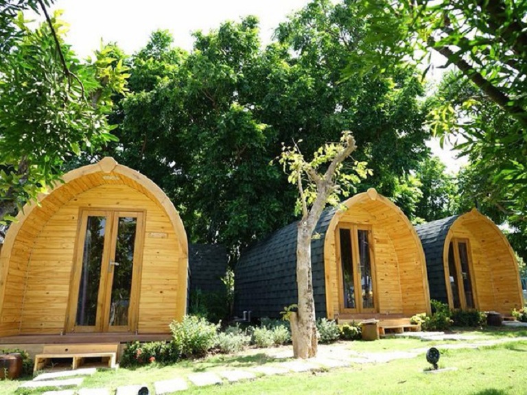 Dãy nhà gỗ Bungalow được xây dựng để tạo nên một không gian tuyệt vời cho khách du lịch có thể check in.