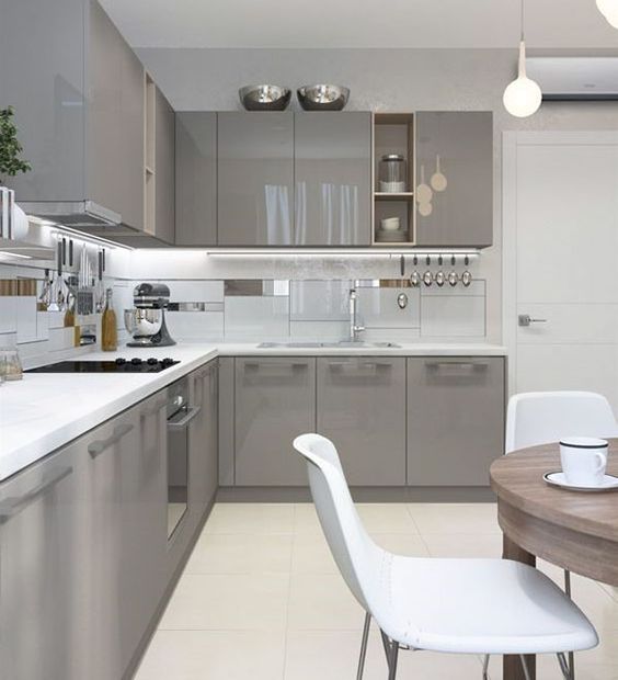Tủ bếp kiểu chữ L phù hợp cho mọi diện tích, không gian phòng bếp, tạo khoảng di chuyển thoải mái
